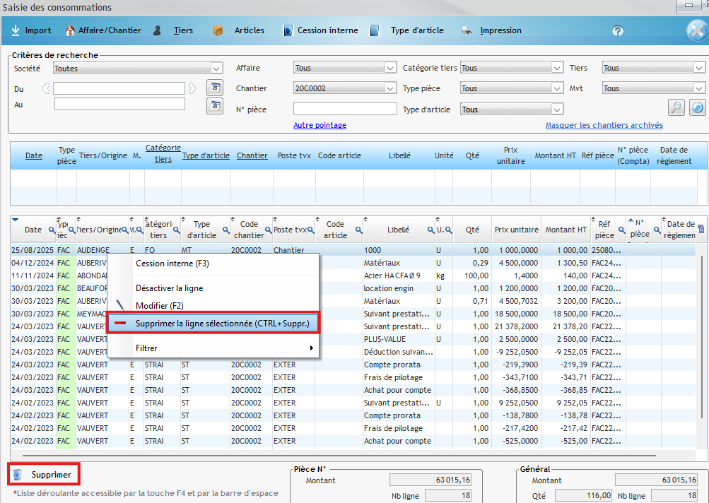 Comment supprimer une dépense visible dans la synthèse financière d’un chantier ? – Q000066